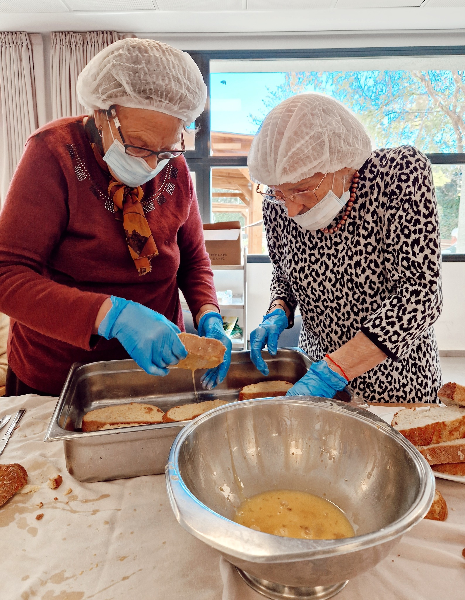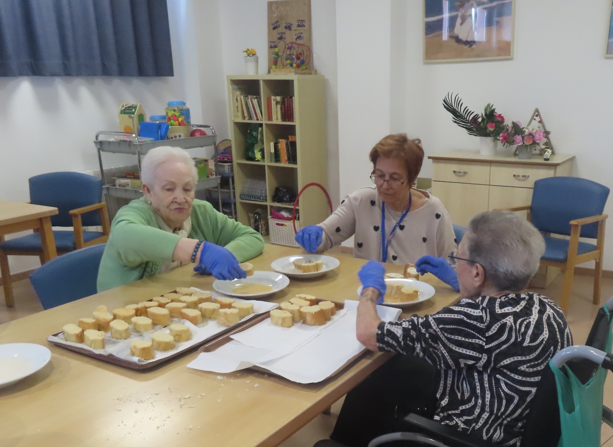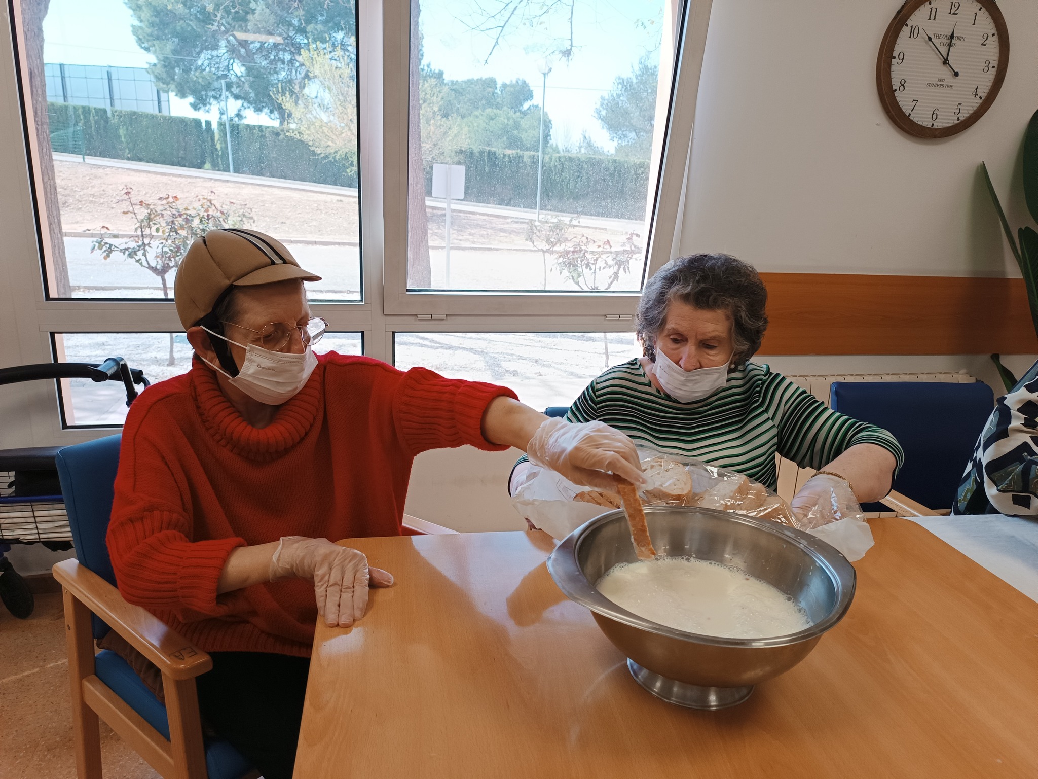 Uno de los talleres con los que más disfrutan nuestros residentes son con los de cocina. Durante la Semana Santa, en todos nuestros centros se realizaron diferentes talleres con el fin de elaborar uno de los postres tradicionales de esas fechas, las torrijas.