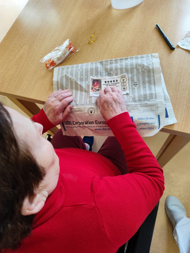 Uno de los momentos más esperados ha sido la tradicional lotería SaviActiva, una dinámica simbólica en la que repartimos décimos recreados y comprobamos a quién le había tocado según los números premiados en el sorteo de Navidad del 22 de diciembre. La ilusión se vivió desde el primer momento: comentarios, risas, pequeños nervios y muchas ganas de participar, convirtiendo una tradición muy nuestra en una actividad compartida que une y anima.